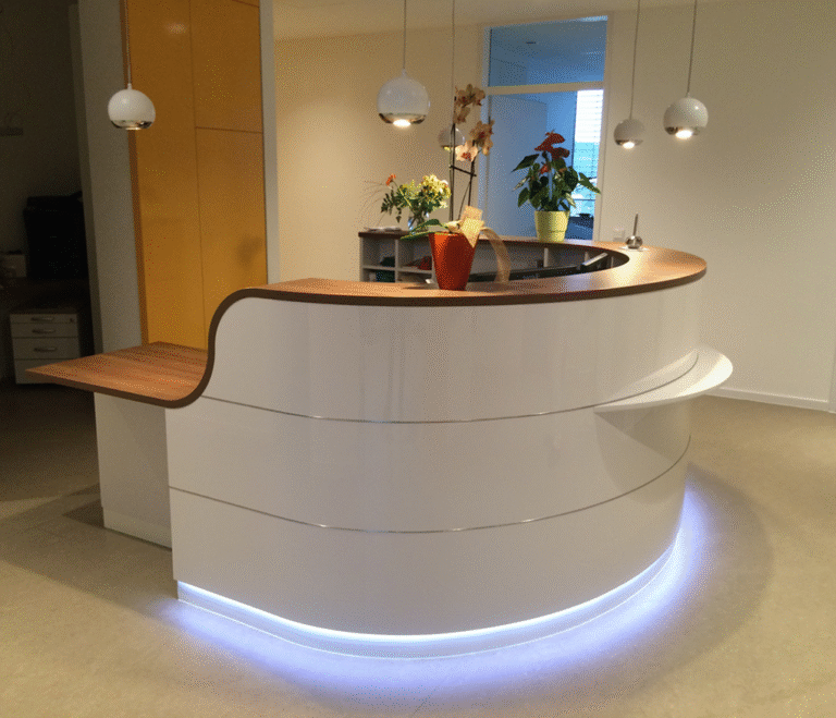 Individuelle Lösungen für Ladenbau, Praxis, Büro und Gastronomie. Wir entwickeln Empfangstheken, Regalsysteme, Arbeits- und Besprechungsmöbel, Wand- und Deckenverkleidungen sowie Akustikelemente aus Holz. Design, Funktion und Belastbarkeit stehen im Fokus: widerstandsfähige Oberflächen, klare Kanten, verdeckte Technik und ergonomische Maße. Nach Aufmaß und Planung fertigen wir präzise in Coswig und montieren terminsicher, auf Wunsch außerhalb der Betriebszeiten, um Ausfallzeiten zu minimieren. Auch Sonderteile und Kleinserien sind möglich